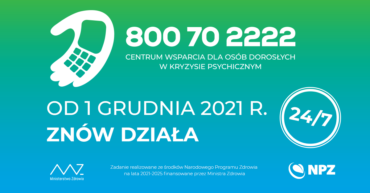 24 godziny na dobę 7 dni w tygodniu, Telefoniczne Centrum Wsparcia 800 70 2222. LINIA JEST BEZPŁATNA.