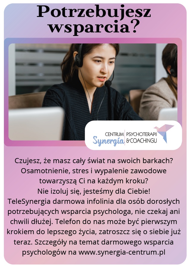 Powiatowe Centrum Pomocy Rodzinie w Nowej Soli informuje o możliwości skorzystania z bezpłatnej pomocy psychologicznej prowadzonej przez Centrum Psychoterapii i Coachingu „Synergia”.
